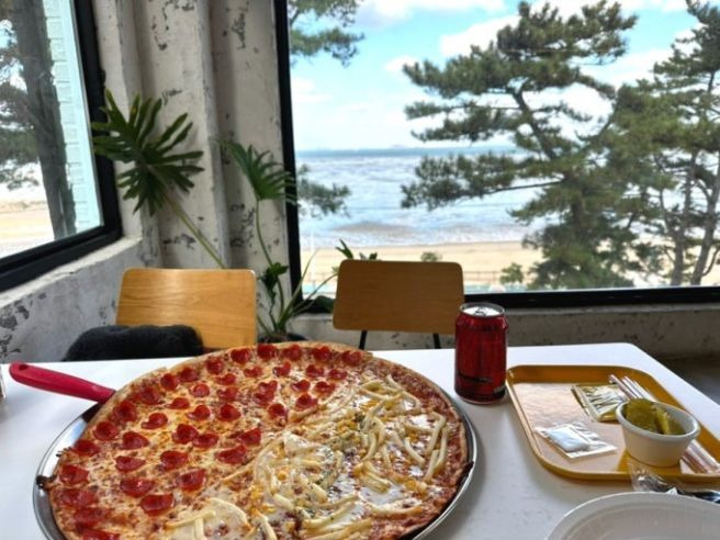 첫 번째는 대부도의 '피자플리즈'입니다! 섬에서 웬 피자냐고요? 여기 옥상에서 보는 바다 뷰가 예술이거든요. 엄청나게 큰 '페퍼로니 피자'가 시그니처인데, 비주얼이 어마어마해서 인스타용으로 최고예요. 🍕🔥