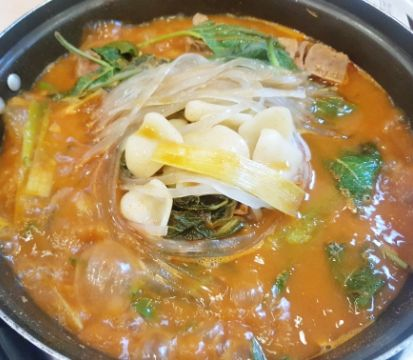 - 푸짐한 양과 신선한 재료: 아낌없이 주는 넉넉함 소(小)자인데도 뼈다귀 양이 정말 푸짐했어요. 큼직한 뼈가 여러 개 들어있고, 우거지, 팽이버섯 등 채소도 넉넉해서 둘이서 배부르게 먹을 수 있었습니다. 특히 아삭하고 부드러운 우거지가 국물과 어우러져 감칠맛을 더했습니다. 끓이면 끓일수록 국물이 더욱 진해지고 재료의 맛이 우러나와 마지막 한입까지 맛있게 즐길 수 있었죠.