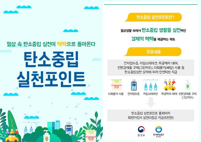 이 외에도 리필스테이션 이용, 무공해차 대여, 폐휴대폰 반납 등 항목이 정말 다양해요. 특히 처음 가입해서 활동을 한 번만 해도 **'실천 다짐금'으로 5,000원**을 그냥 주고 시작하니까, 이건 안 하면 무조건 손해인 셈이죠! 안 그래요? 😉