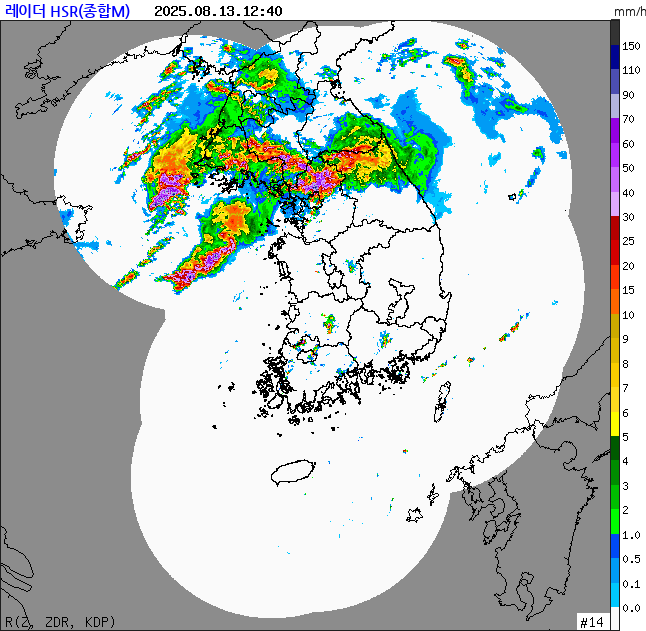 - 수요일 (8월 13일): 현재(오후 1시 기준) 중부지방을 중심으로 비가 내리고 있으며, 특히 수도권과 충청 지역에는 호우특보가 발효된 곳이 있습니다. 시간당 50mm 안팎의 강한 비가 집중될 수 있으니 퇴근길 교통 안전에 각별히 유의해야 합니다. 남부지방은 소나기가 내리거나 대체로 흐린 날씨를 보이겠습니다.