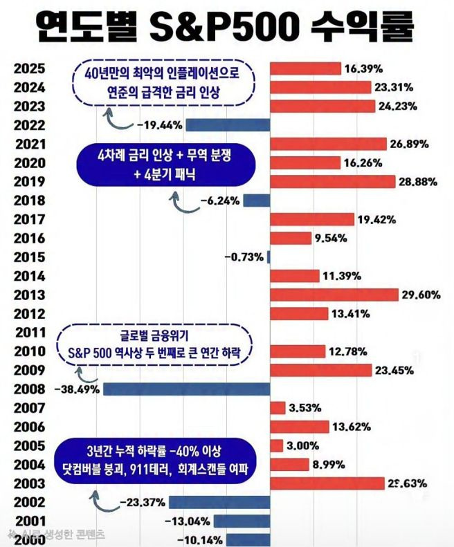 과거 100년 이상의 데이터를 살펴보면, S&P500은 연평균 약 10% 내외의 수익률을 기록해 왔습니다. 여기에 연 1.5~2% 수준의 배당금까지 더해지니, 장기 투자자에게는 최적의 선택지입니다. 개별 종목의 위기에 가슴 졸일 필요 없이 미국이라는 국가의 성장에 투자한다는 관점으로 접근하면 마음이 훨씬 편안해집니다.