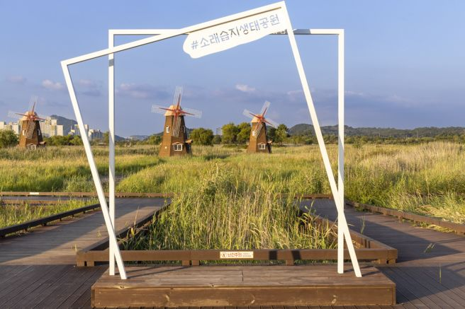 소래습지의 시그니처인 세 개의 붉은 풍차는 갈대밭과 염전 사이에 우뚝 서 있어 마치 유럽의 한적한 시골 풍경을 연상시킵니다. 이 풍차는 이곳이 과거 염전이었다는 역사적 사실과는 무관하지만, 갈대밭의 단조로움을 깨고 이국적이고 동화 같은 분위기를 더해줍니다. 은빛 갈대와 붉은 풍차의 강렬한 색채 대비는 그 자체가 완벽한 포토존입니다.