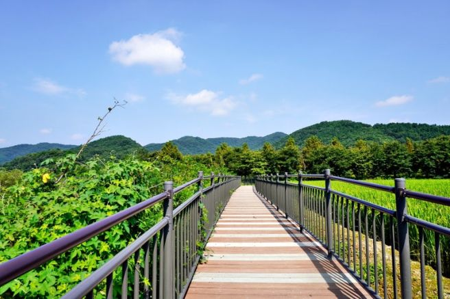 수면 가까이 조성된 데크 위를 걷다 보면 마치 저수지 위를 걷는 듯한 기분이 들어요.