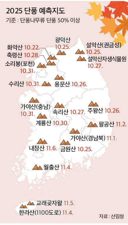 하지만 이번 주말, 단풍놀이 계획을 세우는 데 있어 가장 중요한 변수는 바로 변덕스러운 날씨입니다. 주말을 앞두고 예상되는 비 소식과 큰 일교차에 대비하여, 설악산, 오대산의 영동권 단풍 명소부터 남양주, 양평의 서울 근교 명소까지, 각 지역별 상세한 날씨 예보와 함께 완벽한 단풍놀이 준비물을 체크해 드립니다.