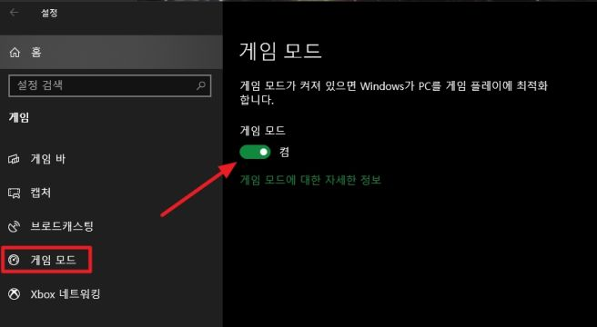 - **'게임 모드'를 '</em>기'**로 설정합니다.
