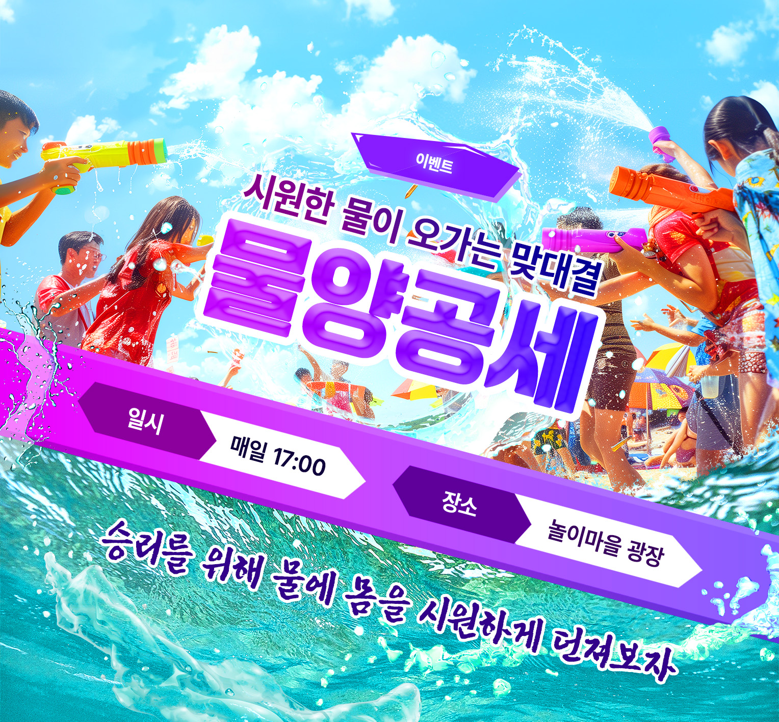 남녀노소 모두가 즐길 수 있는 신개념 전통 물놀이 축제에서, 특별한 여름 추억과 함께 유쾌한 웃음을 마음껏 터뜨려 보세요!
