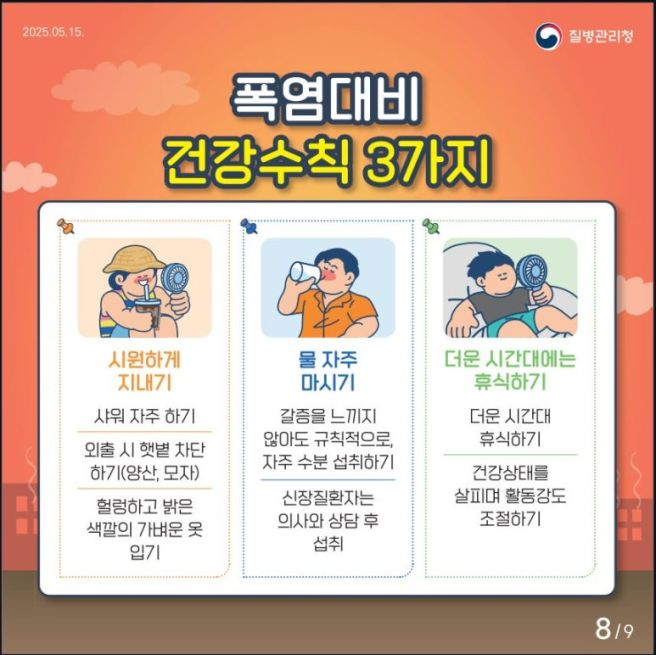 | 🚨폭염 주의보🚨 4050, 여름철 온열 질환 예방! 이것만 기억하세요! (1) | 2025.06.18 |