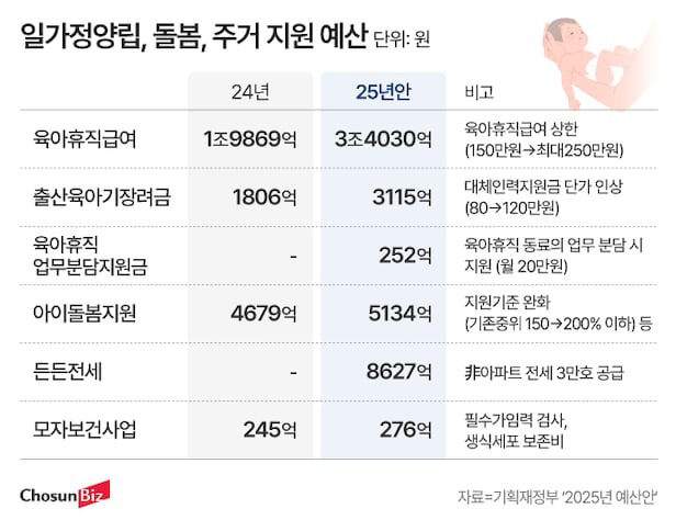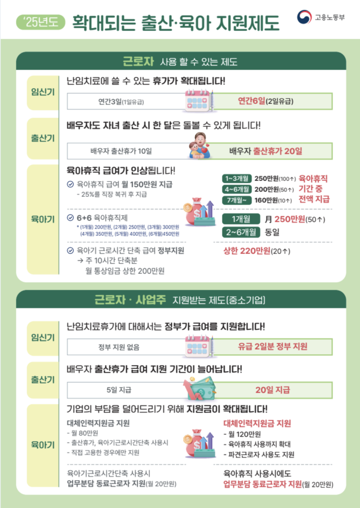 - 부모급여 : 만 0세에서 1세까지의 자녀를 둔 부모에게 매달 지급되는 금액입니다. 2025년부터는 월 100만 원으로 인상됩니다.